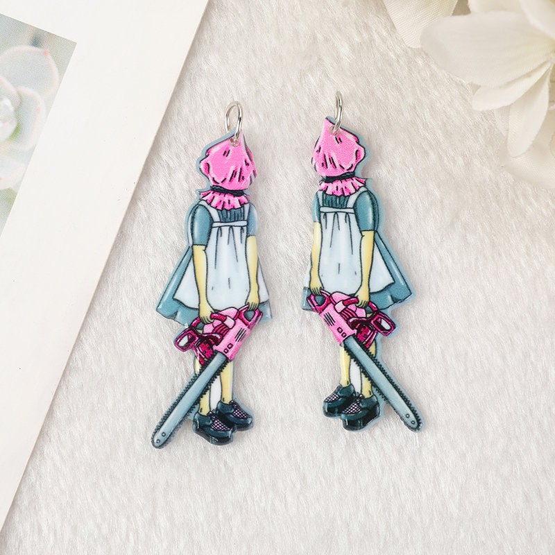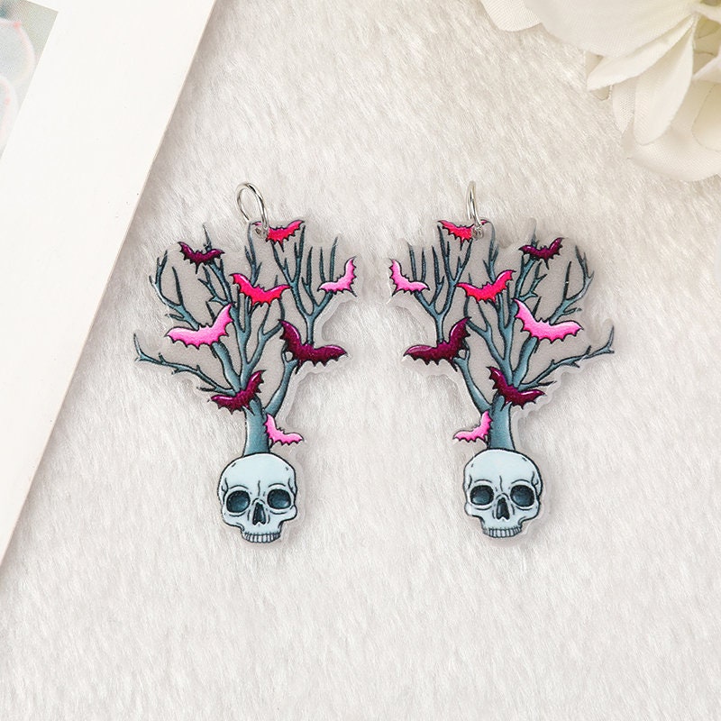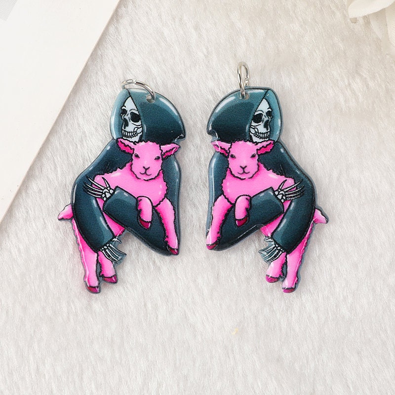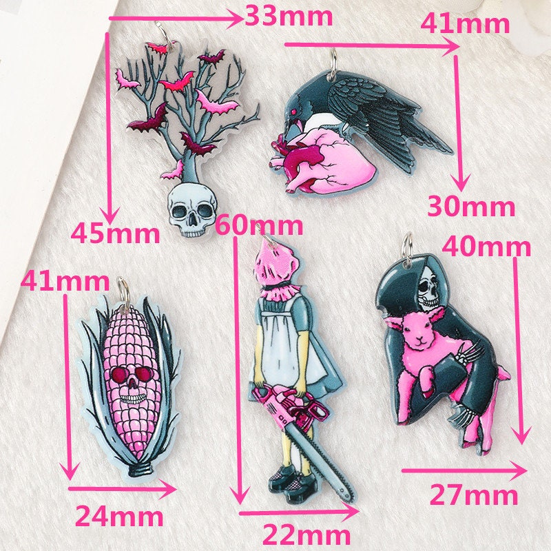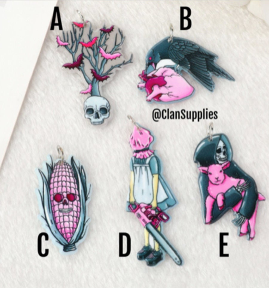 Pastel Goth Acrylic Charms – Skull Tree, Raven Heart, Girl with Saw & Death Sheep | Ref: P15