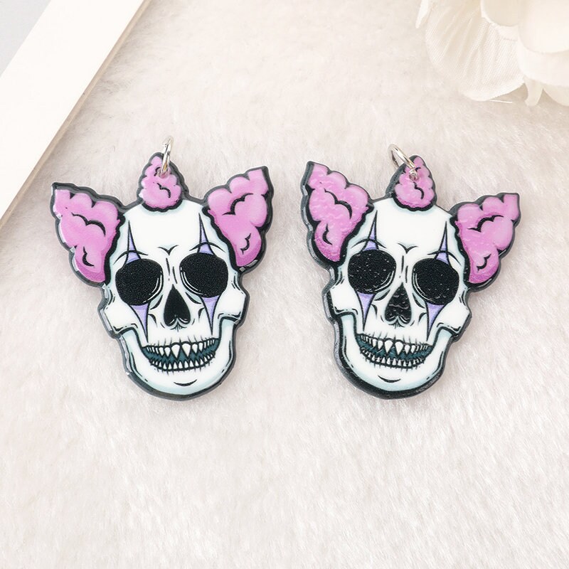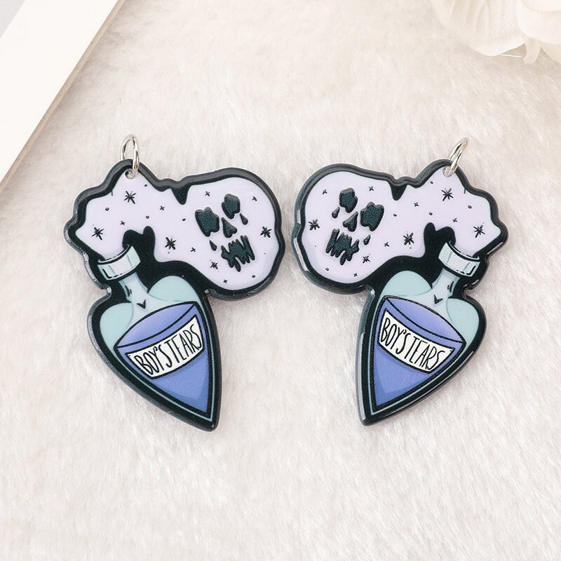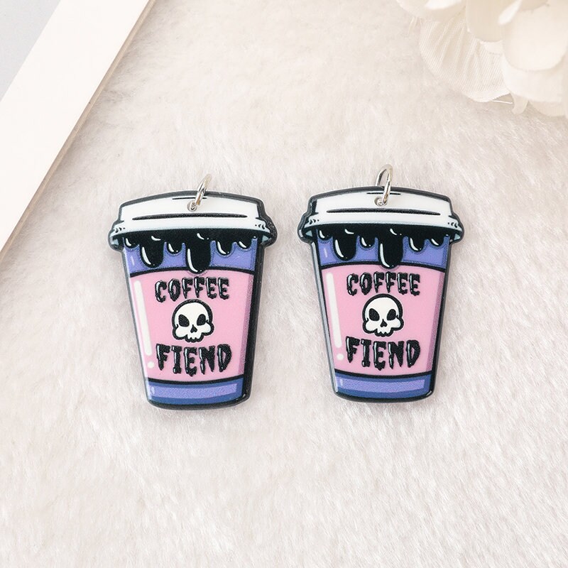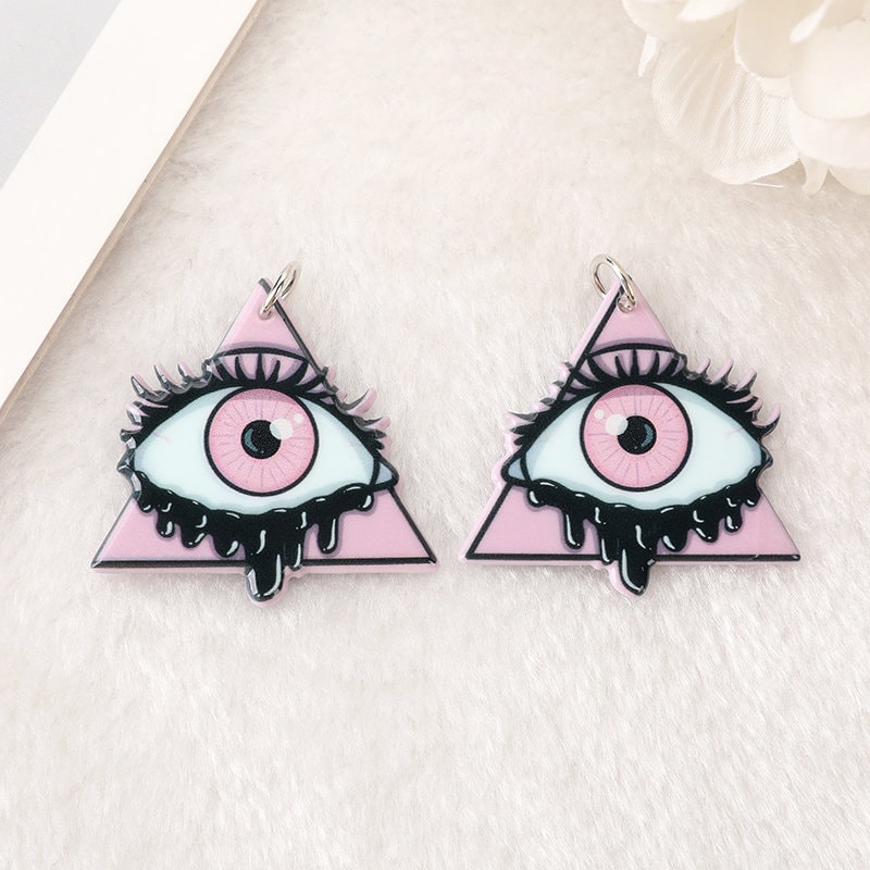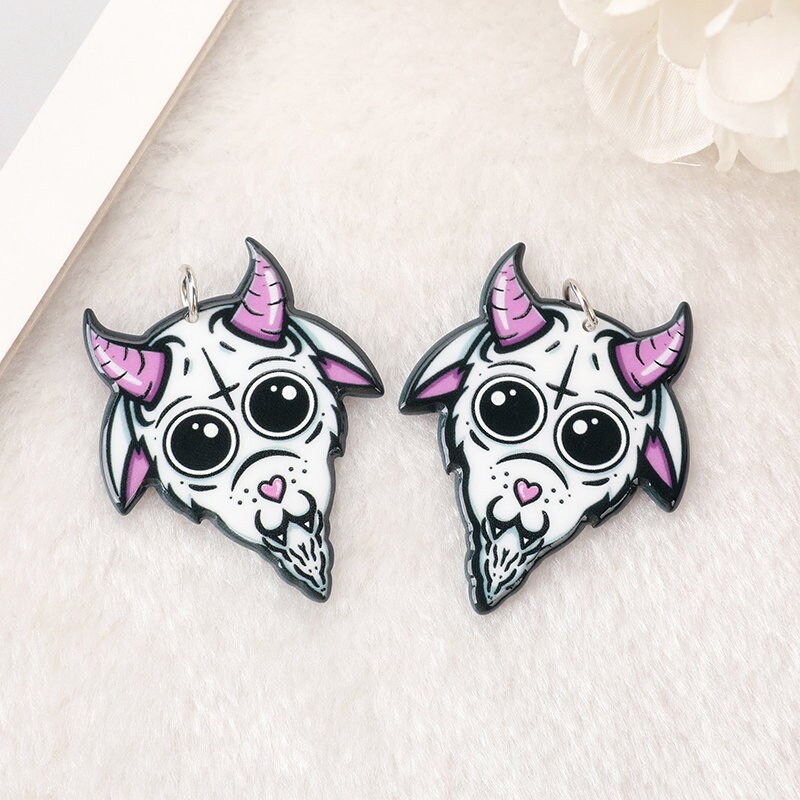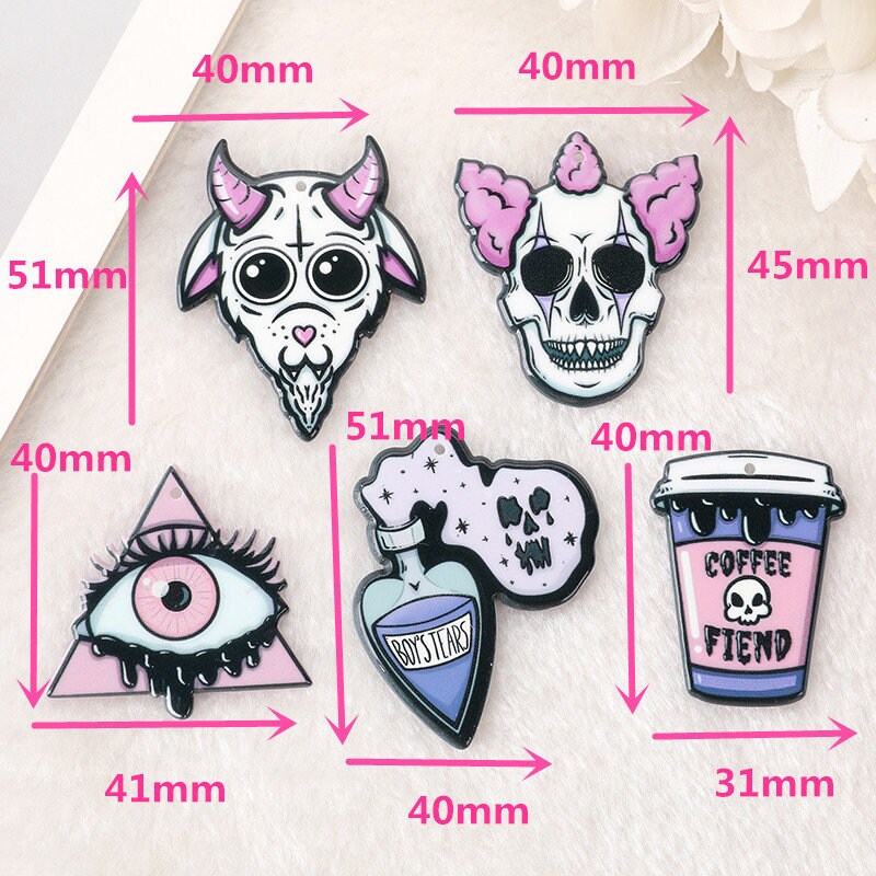 Create spooky-cute jewelry with this Pastel Goth acrylic charm set, featuring iconic designs like Baphomet, creepy clown, coffee cup, dripping eye, and skull styles.