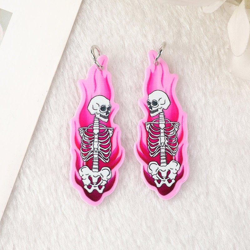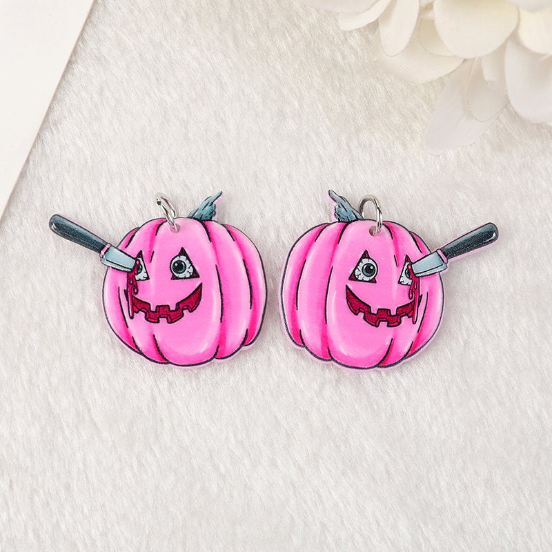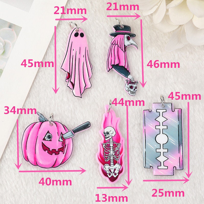 Pink Pastel Goth Acrylic Charms | Ghost, Pumpkin, Blade, Skeleton on Fire | Ref: P10