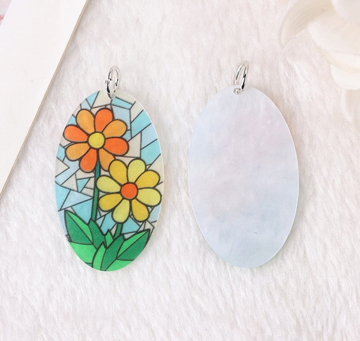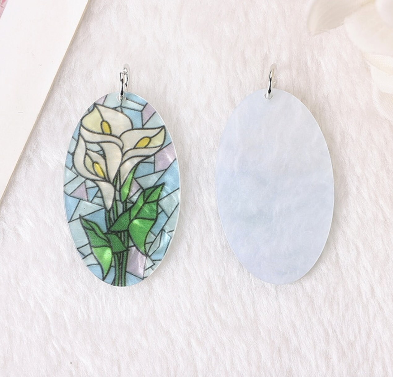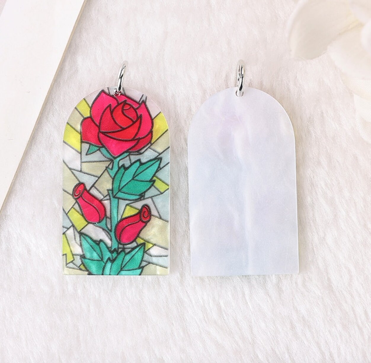 Beautiful stained glass–style flower acrylic charms inspired by classic floral window art. Each design features vibrant colors and delicate line details, perfect for elegant, artistic, and handmade jewelry projects.