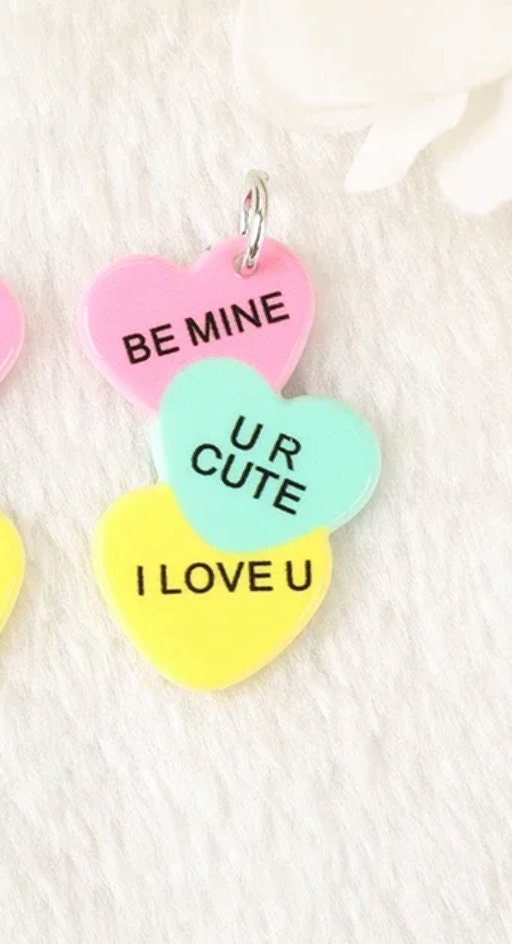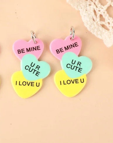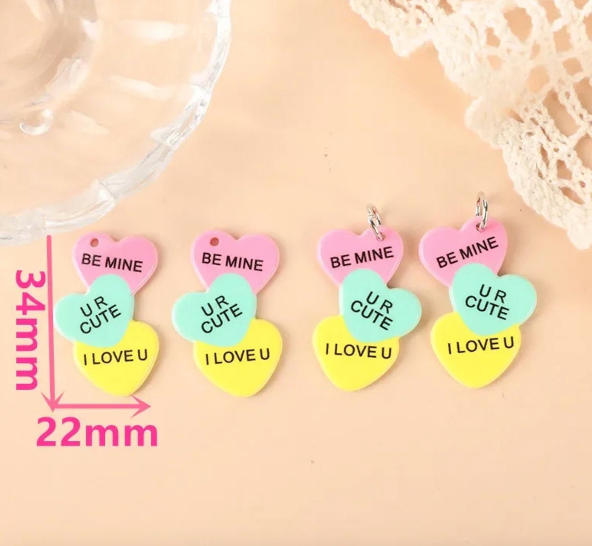 Sweet pastel Valentine charms with classic love phrases like Be Mine, XOXO, UR Cute and I Love You. Cute, colorful and perfect for fun Valentine’s jewelry, gifts, and handmade projects.
